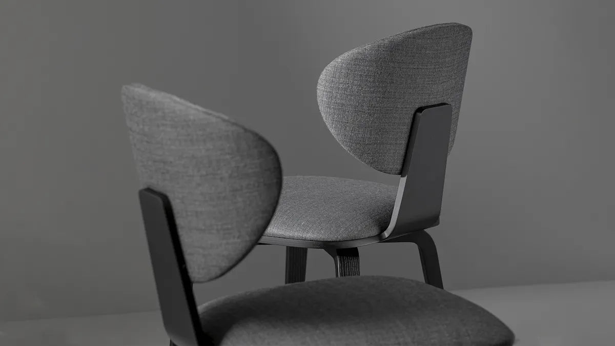 The Olos contemporary design chair is characterized by harmonious shapes that punctuate its components: the support given by the wooden legs, the containment guaranteed by the shell and the molded polyurethane support. The shell, a tribute to organic design, is characterized by its sinuous and essential design, based on the technical-aesthetic prerogatives of curved laminated wood. The load-bearing elasticity of the curved shell of the Olos chair tangibly embodies its ergonomic prerogative, which makes it a chair with unexpected and banal comfort. Thanks to its iconic appearance and cosmopolitan style, Olos chair is suitable for both domestic environments and the hospitality. It is also available in the Olos office version with a cross-shaped metal base and swivel seat