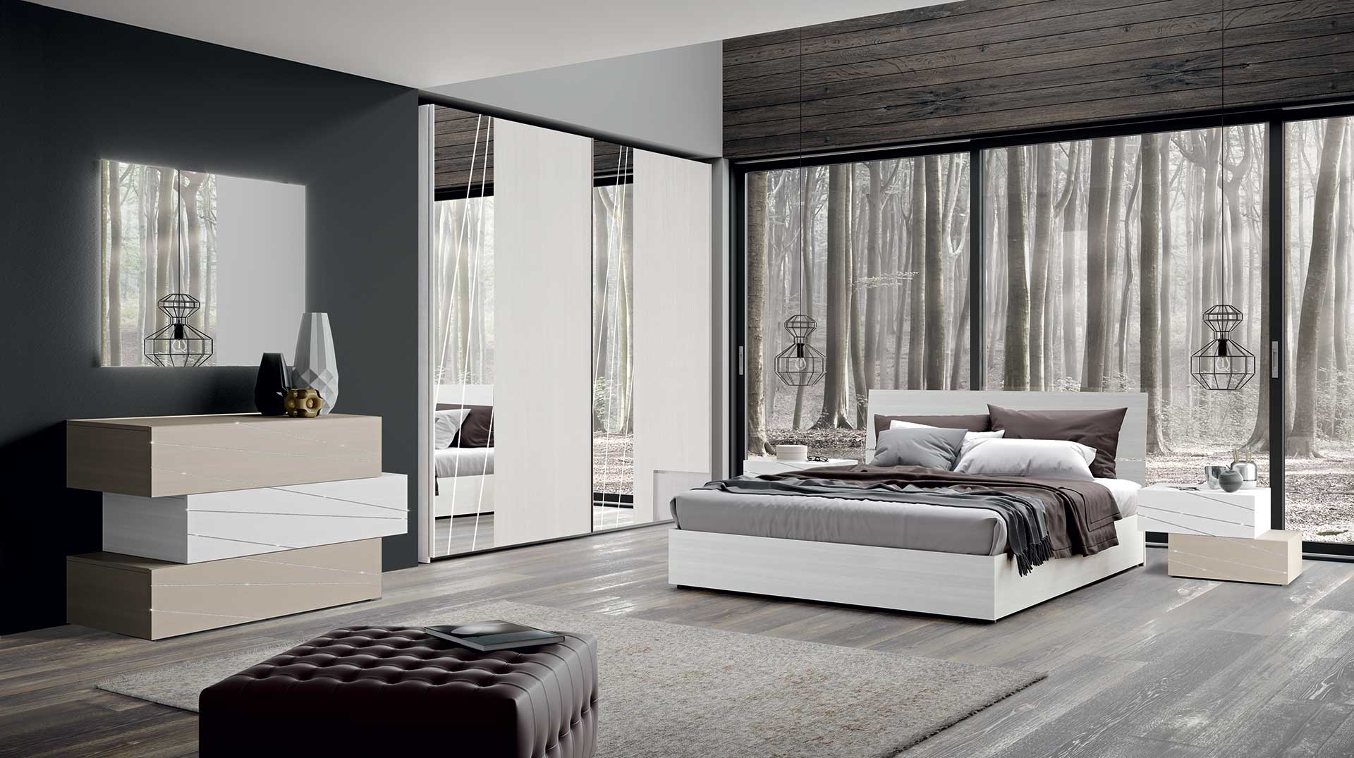 Benvenuti in una camera da letto che cattura lo spirito del lusso contemporaneo. L'ampio armadio maxi e il soffice letto imbottito si fondono in un connubio di eleganza e comfort. Le decorazioni in glitter aggiungono un tocco di glamour sottile, mentre le finiture in bianco lucido e laccato creano una sensazione di modernità e luminosità.