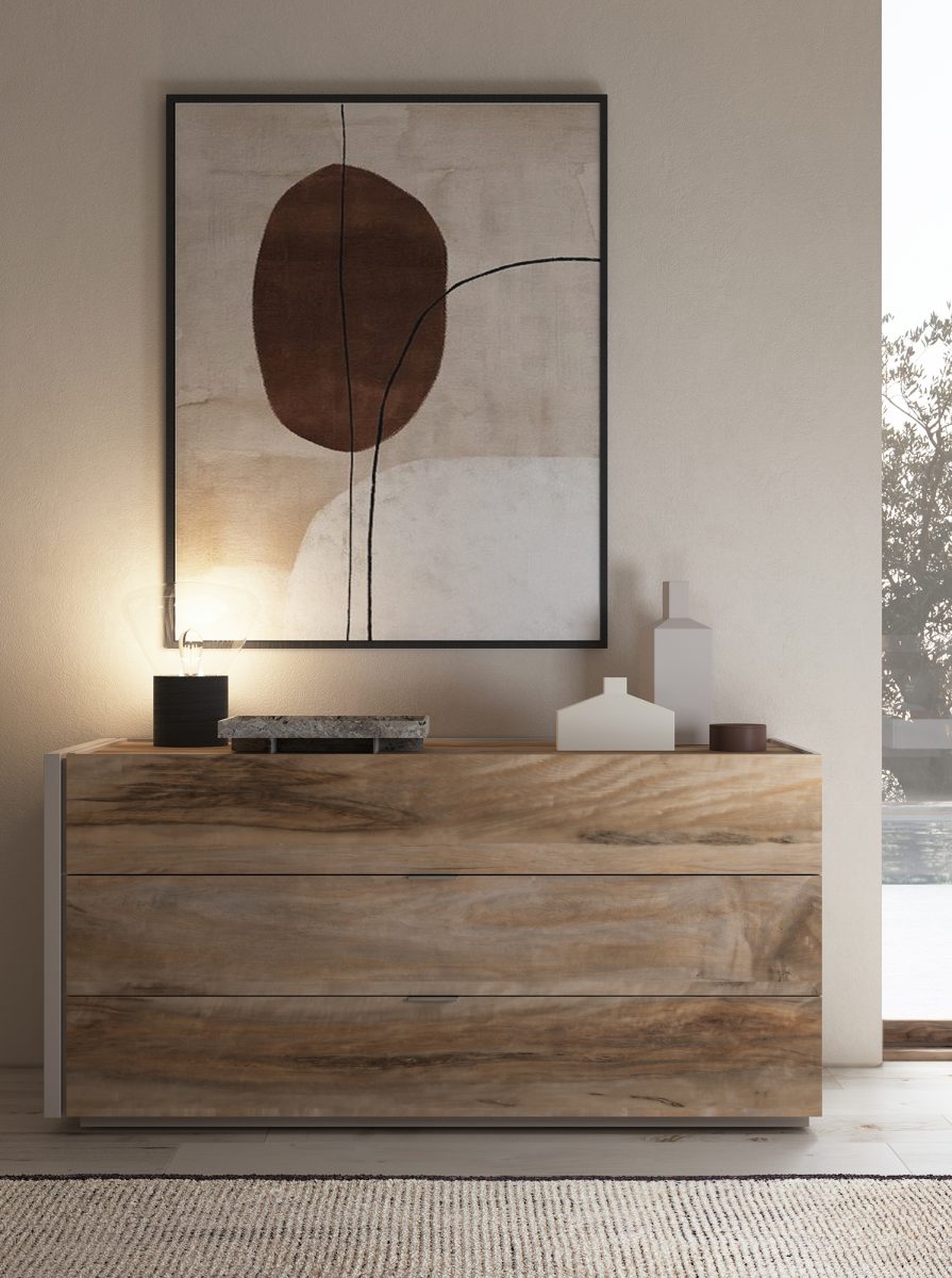 Le design minimaliste de la commode Best est mis en valeur dans ses lignes simples par un côté décoratif épais.