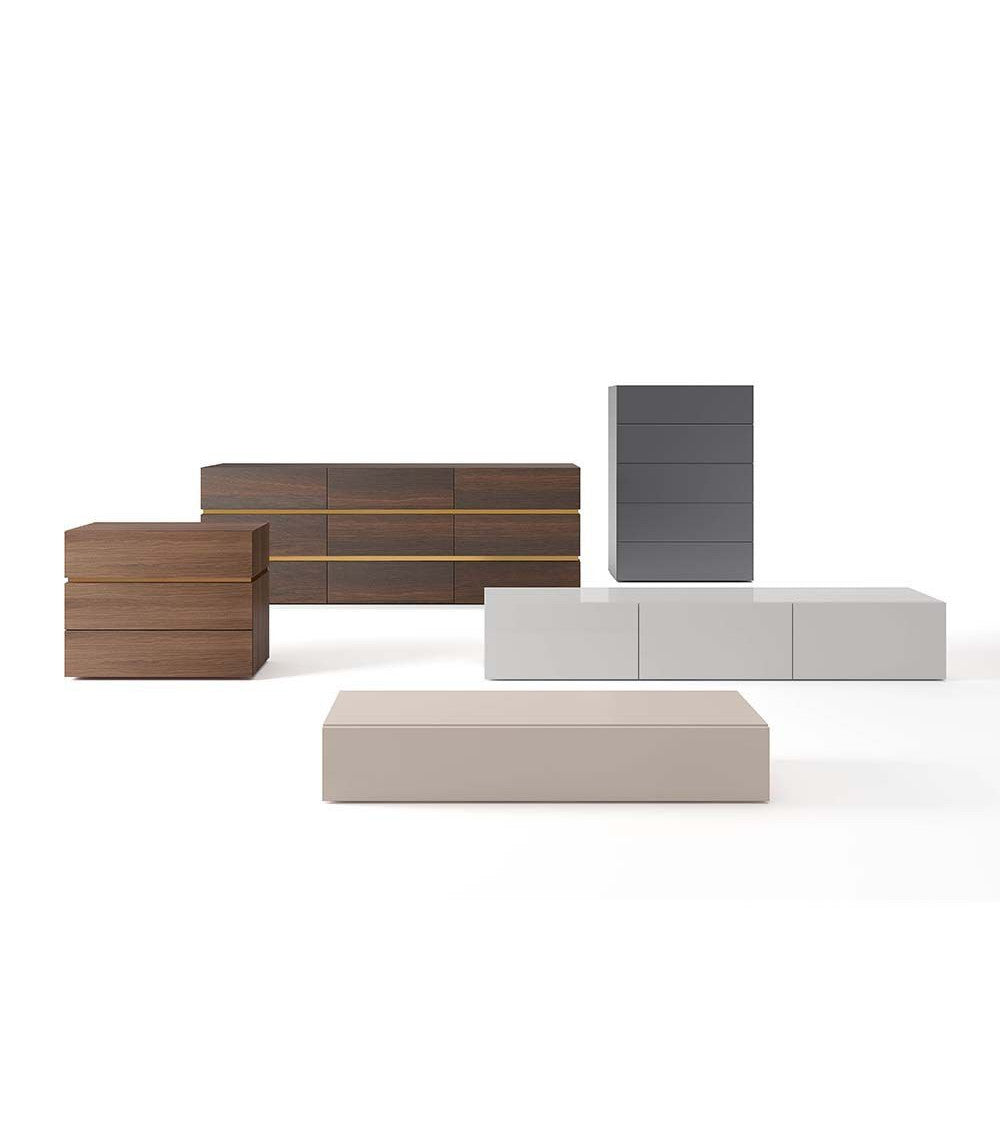 Design linéaire et élégant : People est une famille de commodes et de tables de chevet aux multiples possibilités de composition, dimensionnelles et esthétiques. Des solutions linéaires ou décalées, au sol ou suspendues, meublent la chambre avec un style moderne et raffiné. Glamour est le choix d'ajouter des éléments d'espacement aux compositions, qui peuvent être laquées, métalliques ou en bois. Les façades sont dépourvues de poignées et disposent d'un évidement latéral destiné à l'ouverture des tiroirs.
