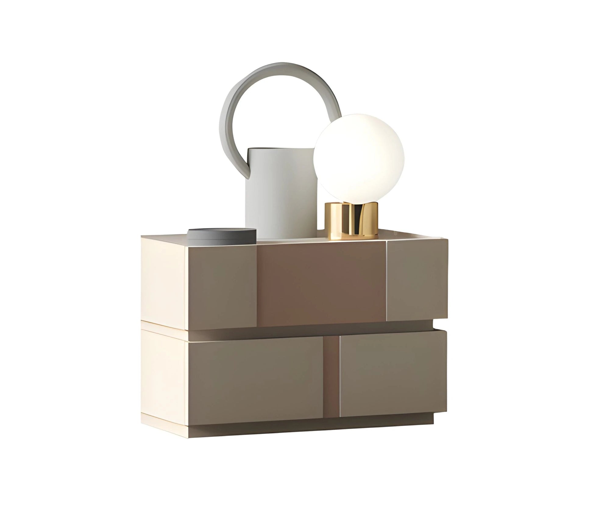 La table de chevet Rialto, qui fait partie du groupe de nuit Rialto avec le lit Step, présente un design unique caractérisé par le mélange intéressant de panneaux de différentes épaisseurs et couleurs, qui définit la forme des éléments. Cette combinaison de couleurs se reflète également dans les façades des tables de chevet Rialto, et l'espace horizontal entre les tiroirs met en valeur leur forme tridimensionnelle, facilitant ainsi leur ouverture.