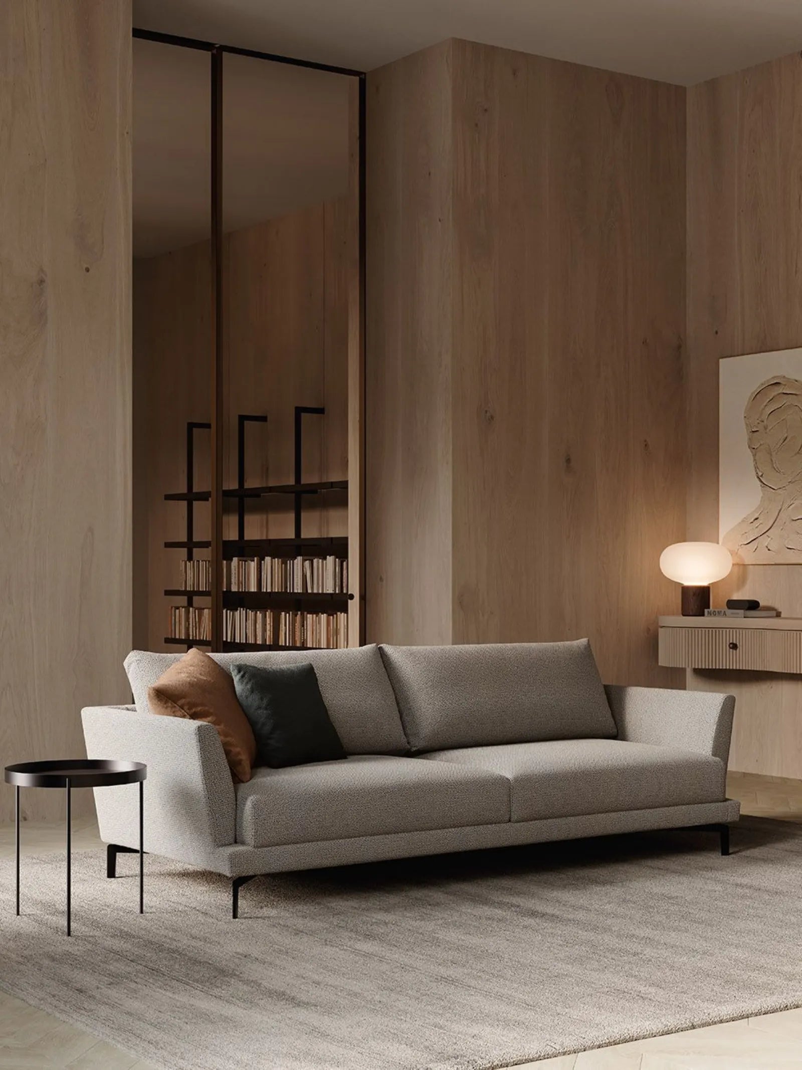 Elton se caractérise par un design sobre, au-delà du temps et de la mode. L'esthétique raffinée qui la caractérise s'exprime dans le design aux lignes épurées et aux accoudoirs qui s'ouvrent légèrement vers l'extérieur, accentuant et caractérisant son design.