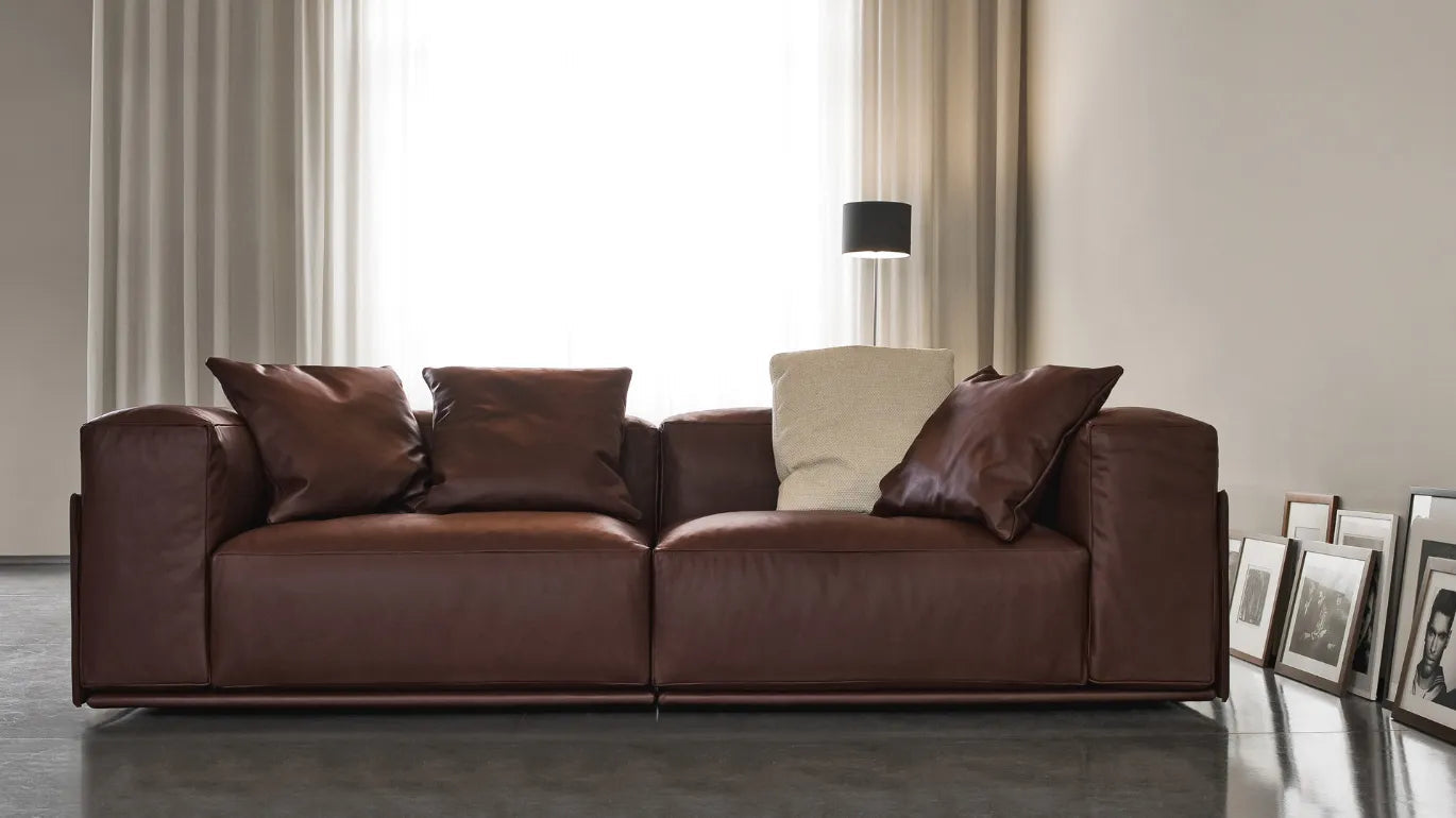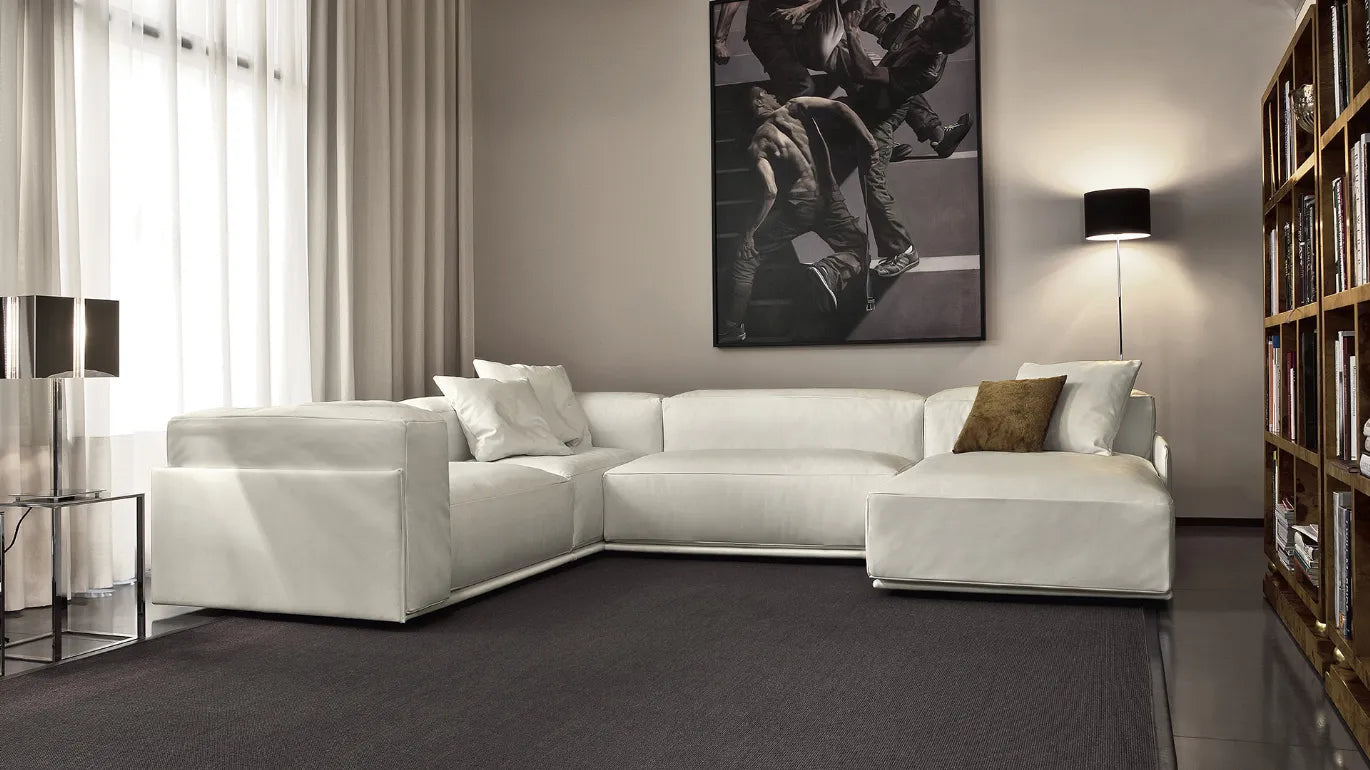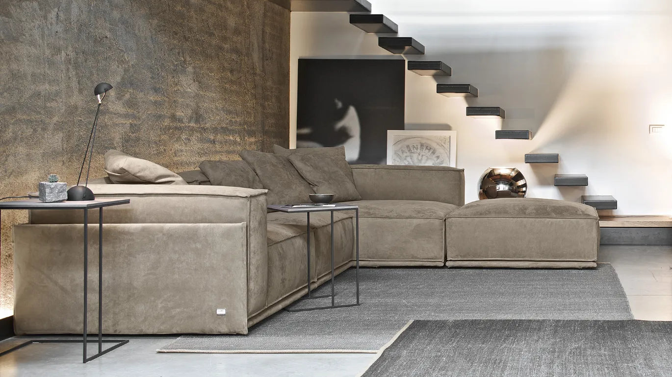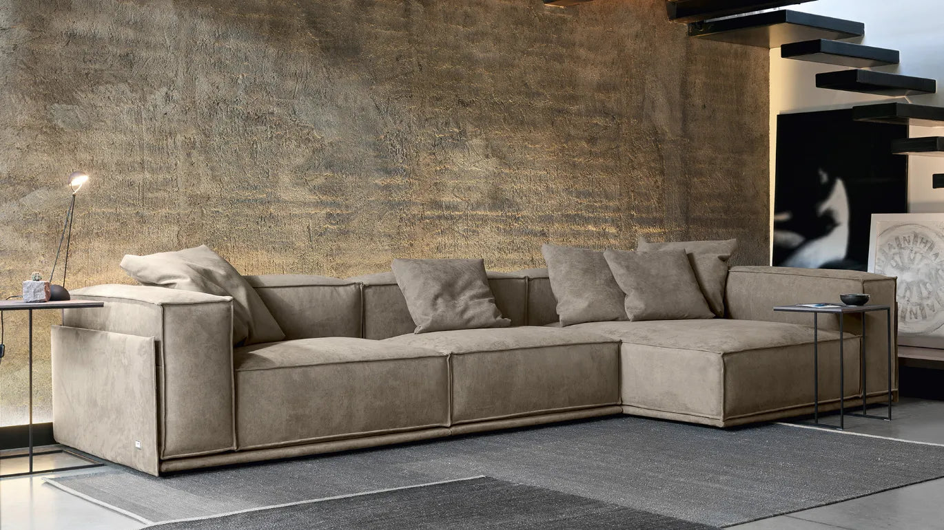 Le style informel souligné par une structure austère et carrée, combiné au revêtement en tissu ou en cuir véritable, travaillé avec un savoir-faire vestimentaire, font de ce canapé le meuble parfait. idéal pour les appartements ou lofts modernes et tendance . Parfait dans les projets d'intérieur les plus soignés, où la matérialité des éléments leur permet de mettre en valeur leurs formes.