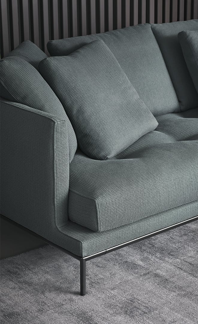Avec son image globale, élancée et essentielle, le canapé Soft Island représente un choix de confort et de refuge : avec une assise profonde, accompagnée d'une quantité généreuse de coussins, il offre une manière de s'asseoir sur le canapé toujours personnalisable. Le grand corps du canapé Soft Island, aux lignes épurées et rigoureuses, accueille un seul long coussin d'assise, réalisé avec des coutures qui donnent mouvement et élégance. Les nombreux coussins de dossier améliorent la perception de simplicité formelle et de confort composé. Soft Island est également disponible avec une structure métallique qui définit la base du canapé, donnant une touche supplémentaire de raffinement et d'élégance. Le revêtement de la collection Soft Island est entièrement déhoussable et est disponible en tissu ou en cuir. Les pieds en métal rationalisent la composition et allègent son image globale