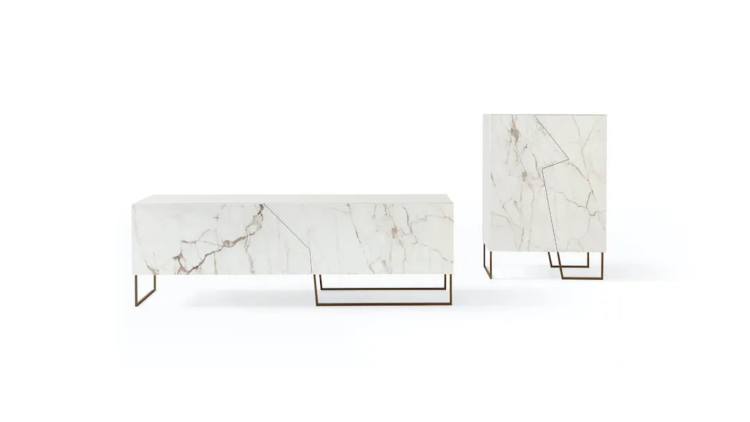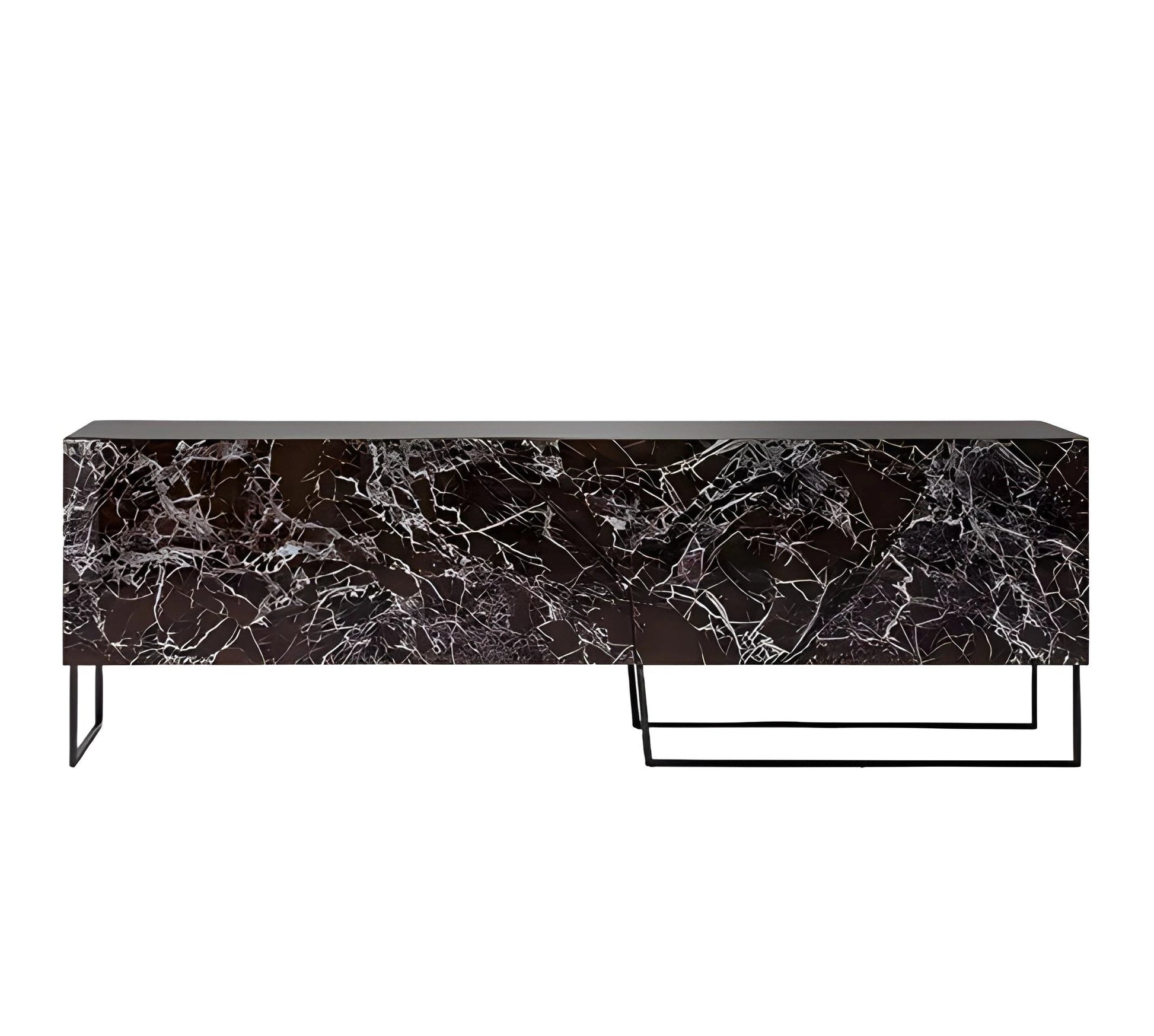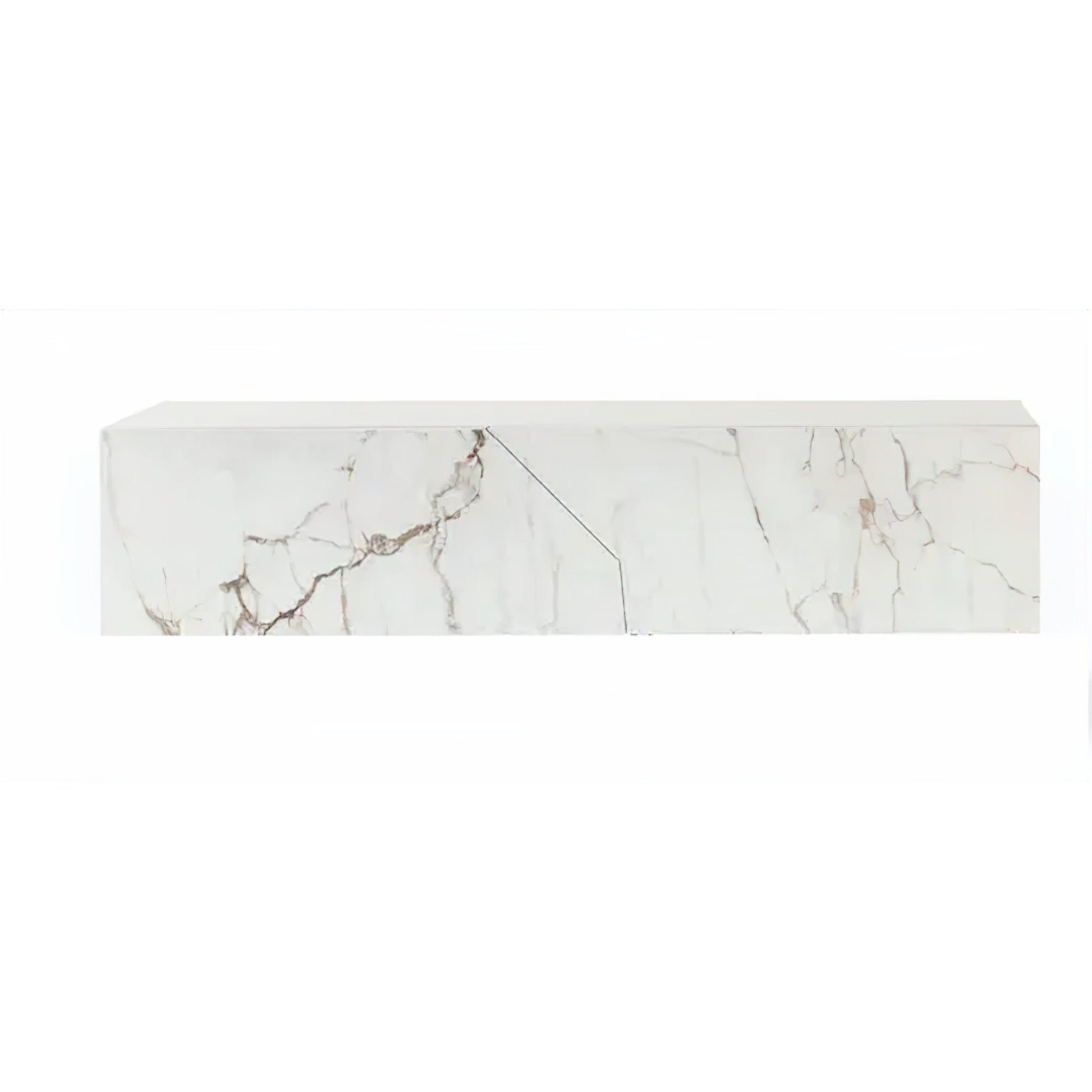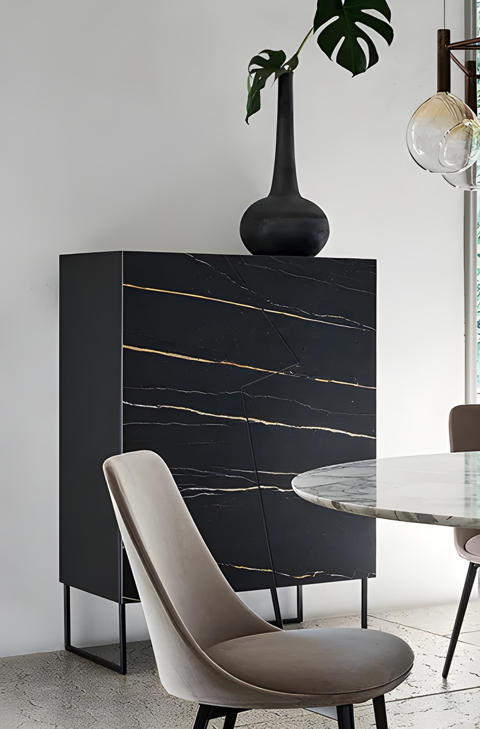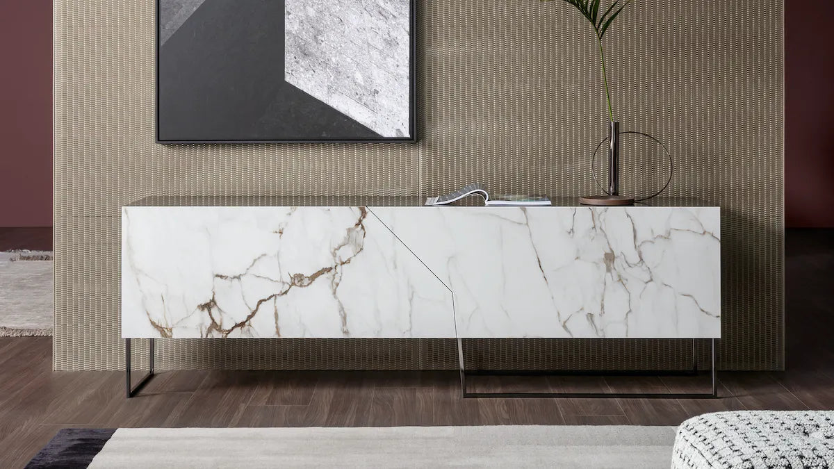 En appliquant la géométrie à la matière, le buffet moderne, disponible dans la version haute ou basse, Doppler K Sideboard se distingue par son fort impact scénographique, qui peut caractériser tout type d'environnement et style de décoration intérieure. Presque suspendu à la base métallique linéaire, le volume conteneur, en bois laqué, se caractérise par le revêtement des portes en céramique. L'ouverture asymétrique des portes représente un autre signe d'originalité. Le buffet moderne Doppler K est disponible en deux hauteurs différentes, adaptées aussi bien à l'espace de vie qu'à l'espace nuit. L'originalité des formes, alliée à la rigueur des matériaux, crée un résultat d'une puissance absolue dans le buffet Doppler K.