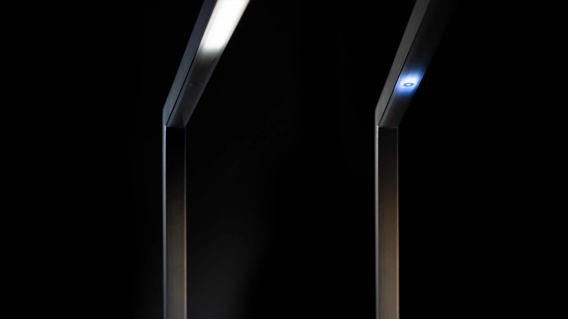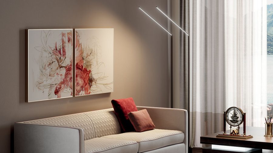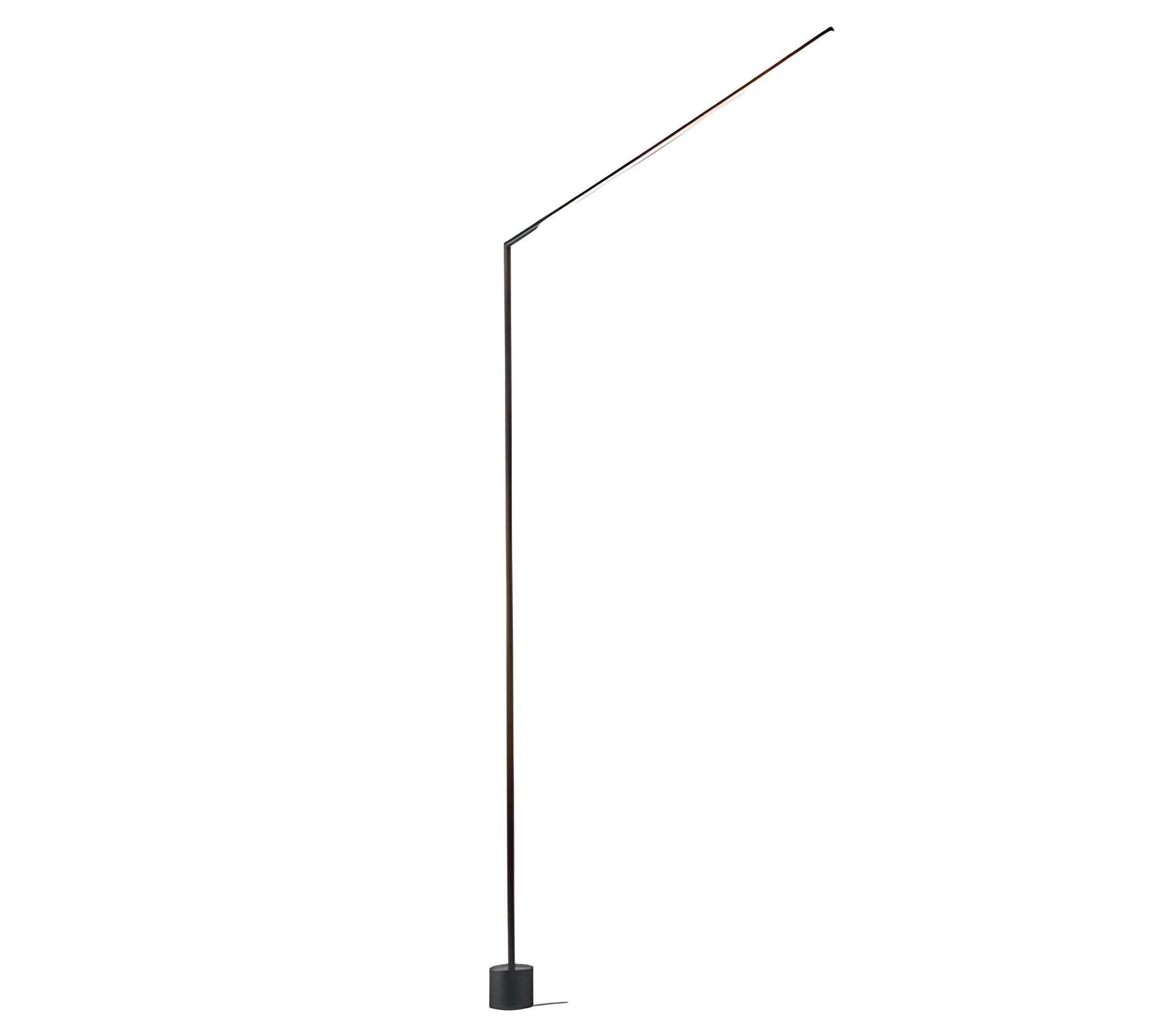 Lampadaire en métal finition laiton foncé. base ronde avec mécanisme pivotant à 360 ° . Système d'éclairage LED avec interrupteur tactile.