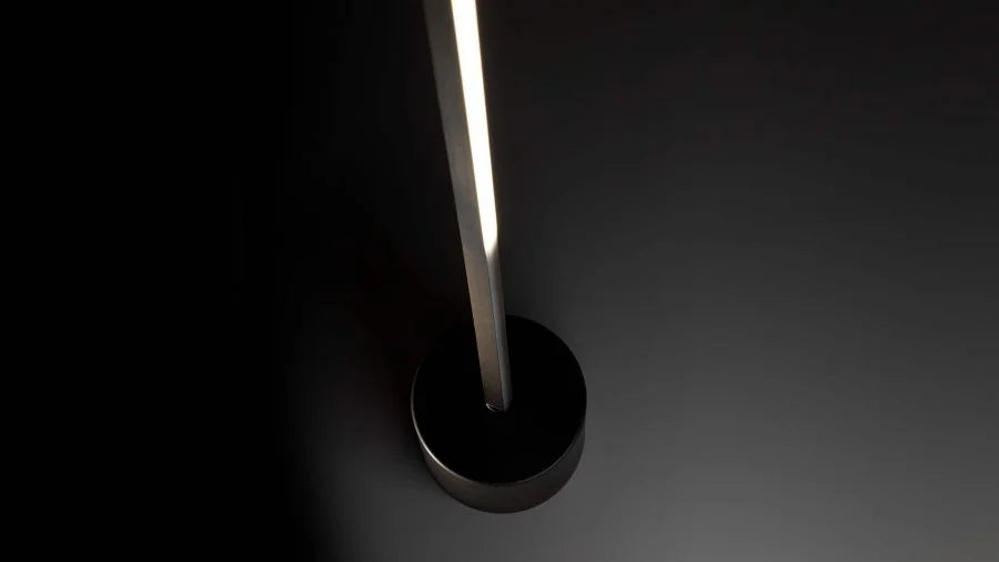 Lampadaire en métal finition laiton foncé. Base ronde avec mécanisme pivotant à 360 ° . Système d'éclairage LED avec interrupteur tactile.