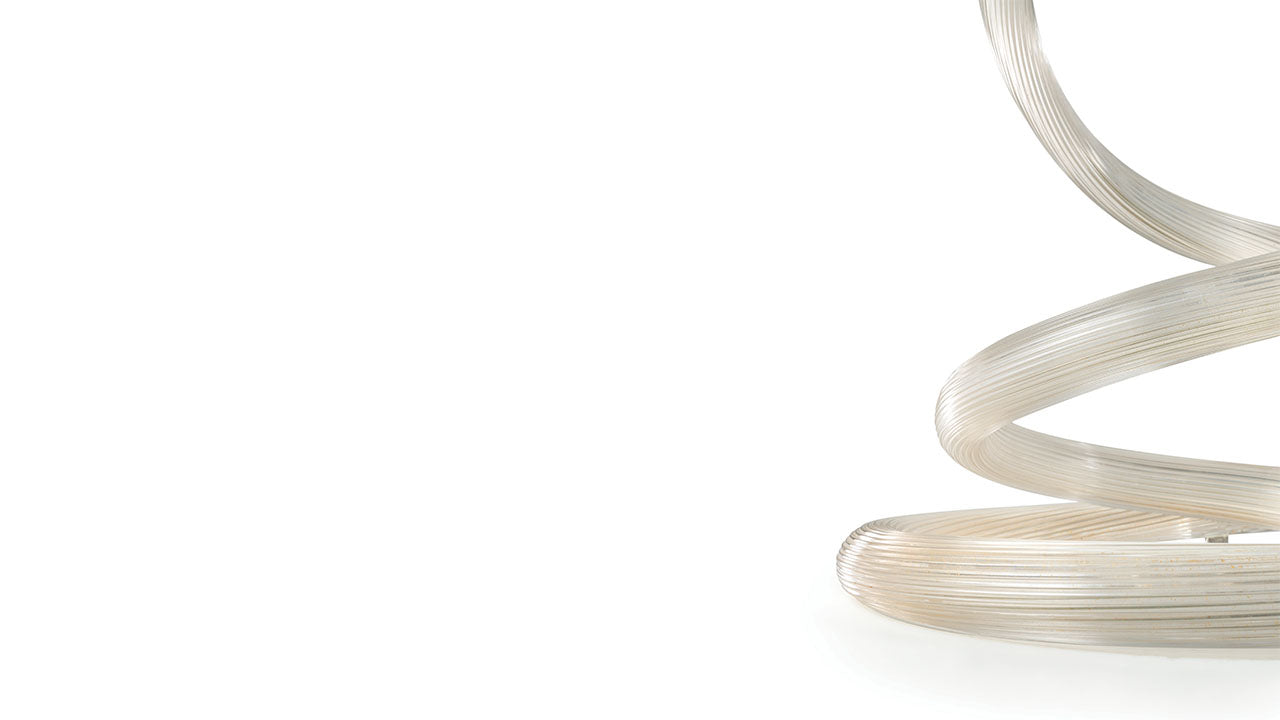 Lampadaire en verre de Murano transparent, noir, thé, améthyste, nervuré blanc ou verre de Murano doré. Abat-jour en tissu pongè opaque ivoire. Système d'éclairage LED.