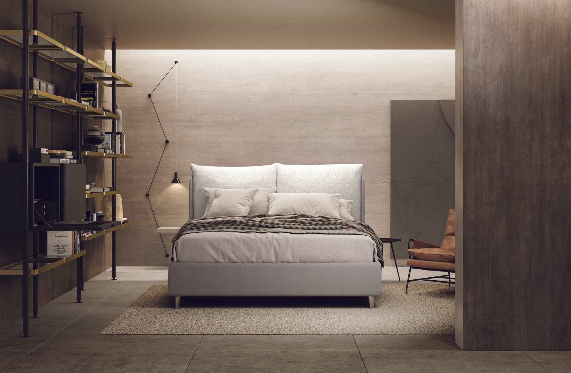 Letto contenitore con testiera imbottita da terra Alice.