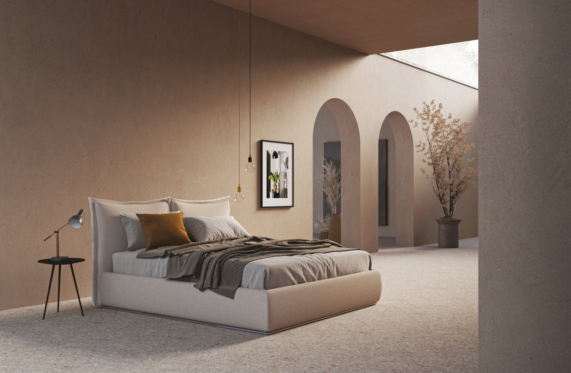 Lit Leon moderne qui peut s'adapter à n'importe quel contexte de vie, grâce à la vaste gamme de finitions et de revêtements à choisir en fonction de vos besoins.