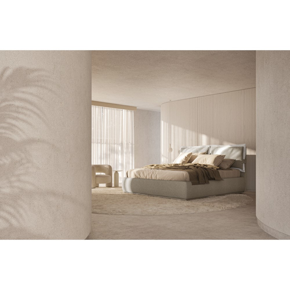 Le lit est magistralement rembourré et recouvert d'un tissu de haute qualité, choisi non seulement pour son aspect esthétique mais également pour sa durabilité et son toucher luxueux. La surface douce et confortable du tissu ajoute un niveau de confort supplémentaire à votre repos.