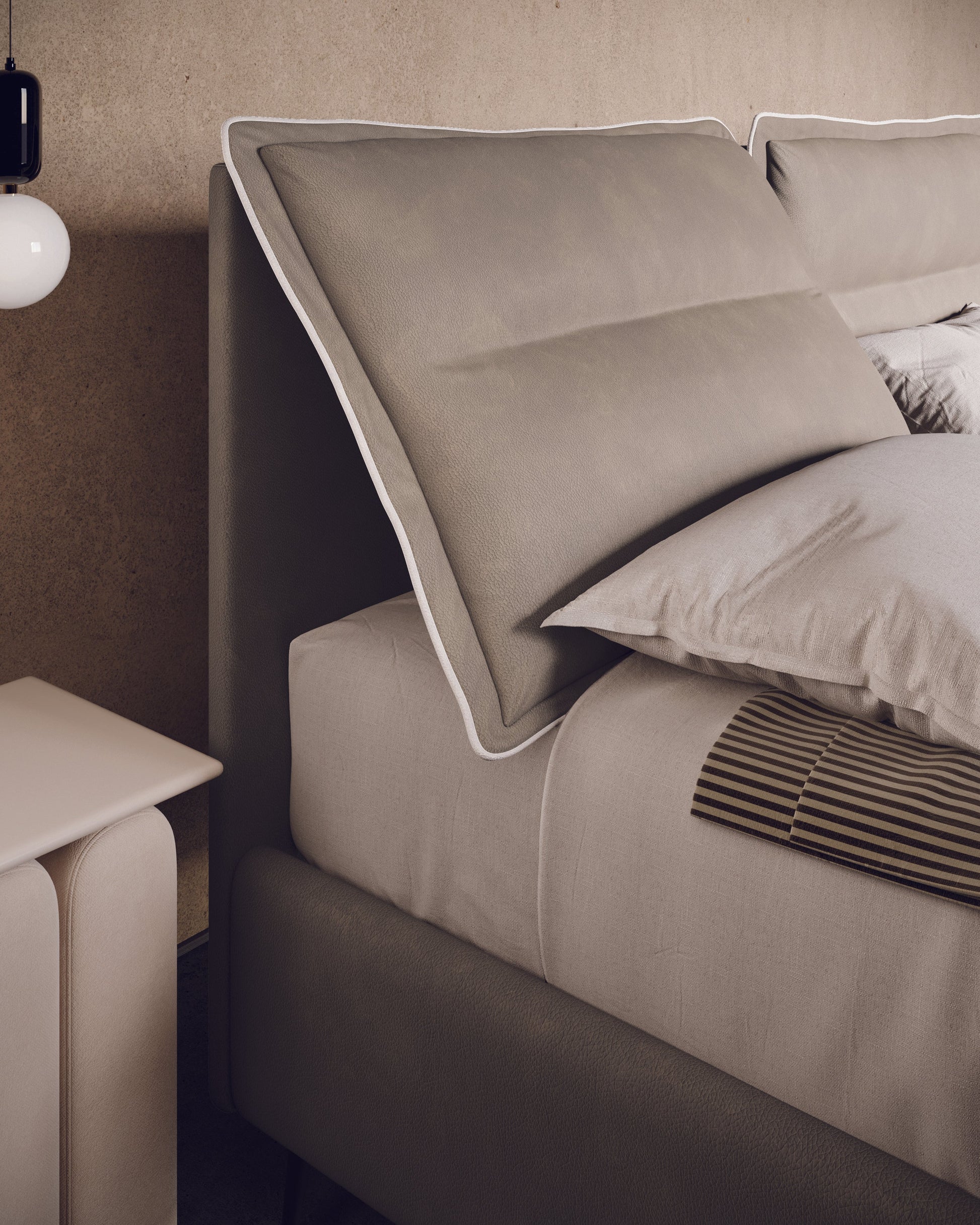 Le lit textile Matilde représente un équilibre parfait entre esthétique moderne et confort intemporel. Conçu avec une attention particulière à la fonctionnalité et au style, ce lit rembourré est idéal pour ceux qui recherchent une touche d'élégance et de confort dans leur chambre.