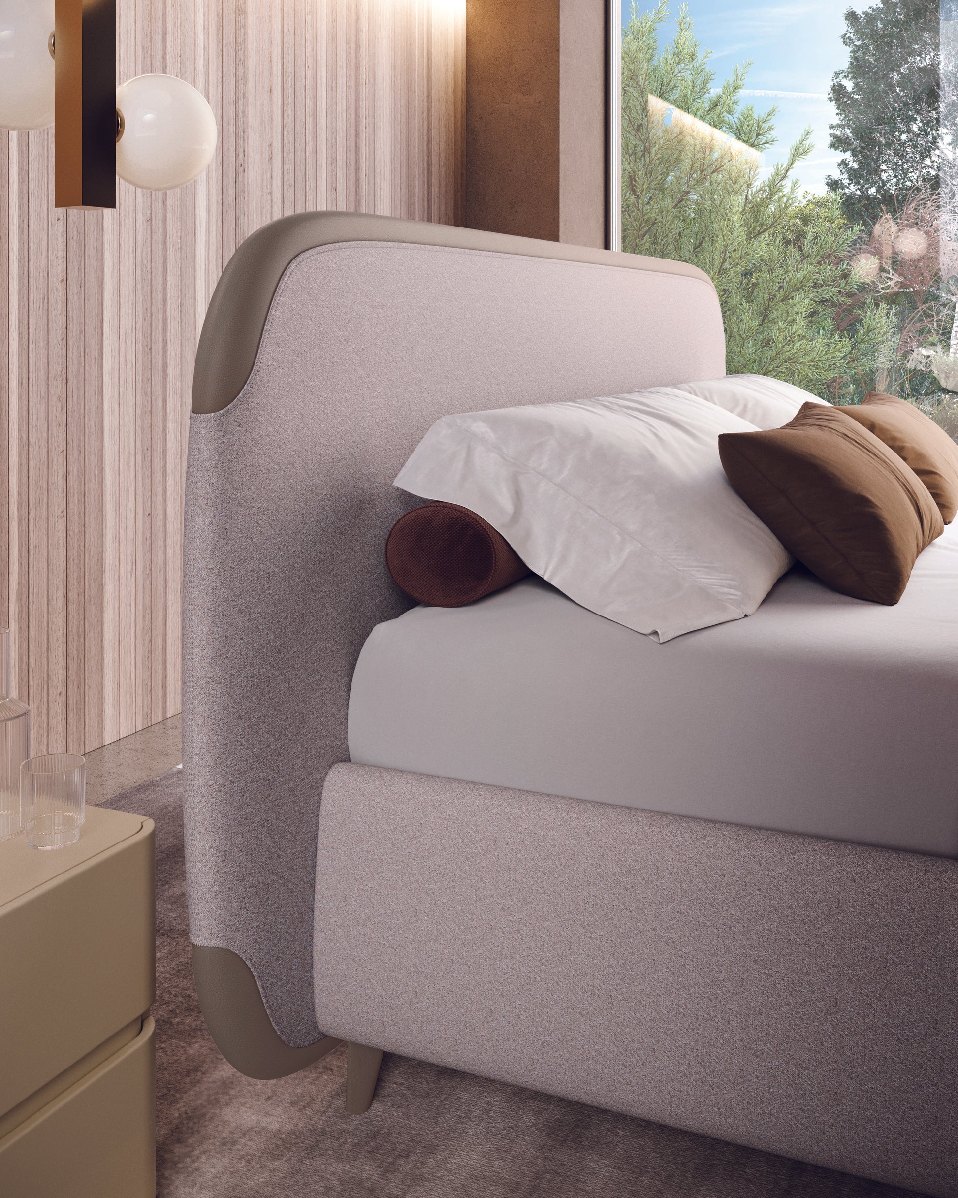 Letto tessile disponibile in varie versioni di giroletto e piedini, anche con mantovana.