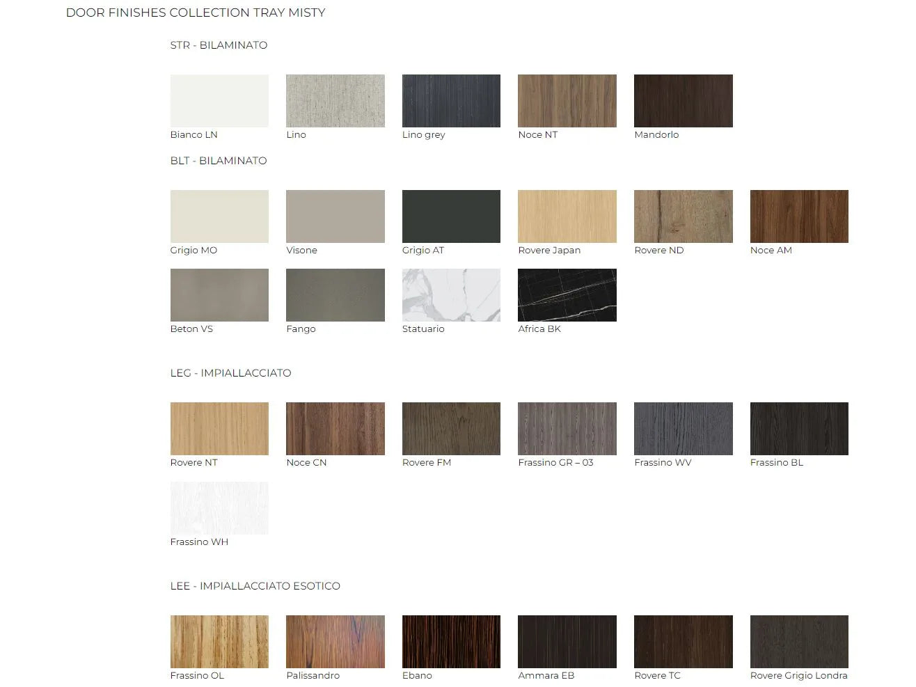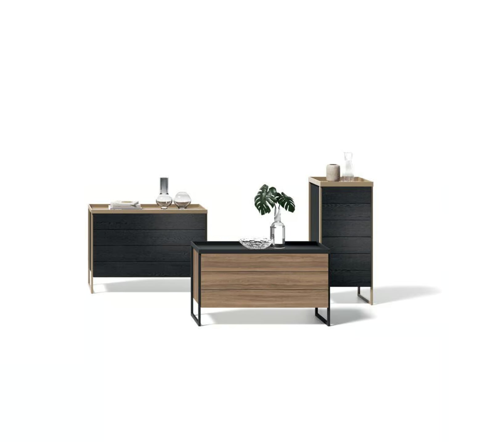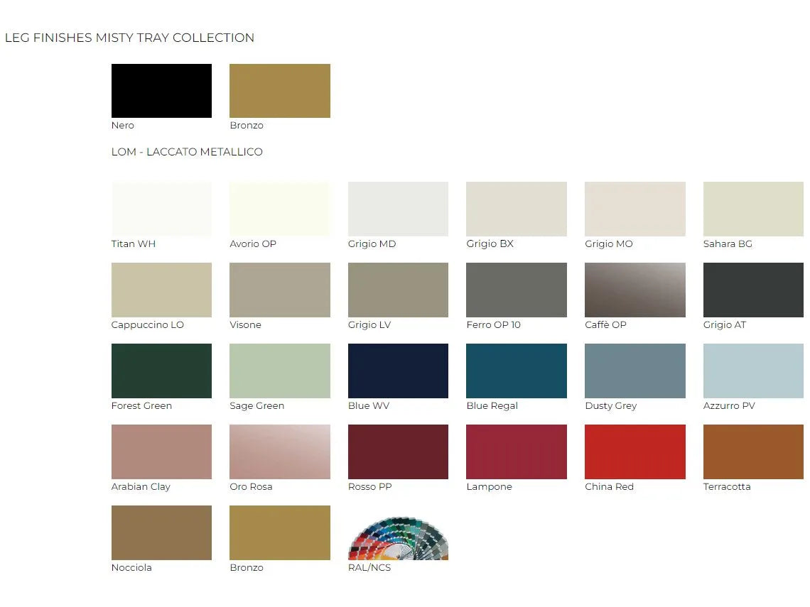 Le buffet Misty Tray est composé de tiroirs avec ouverture push-pull. Le plateau supérieur est laqué mat et est équipé d'un tapis en éco-cuir. La base Misty est en aluminium anodisé.