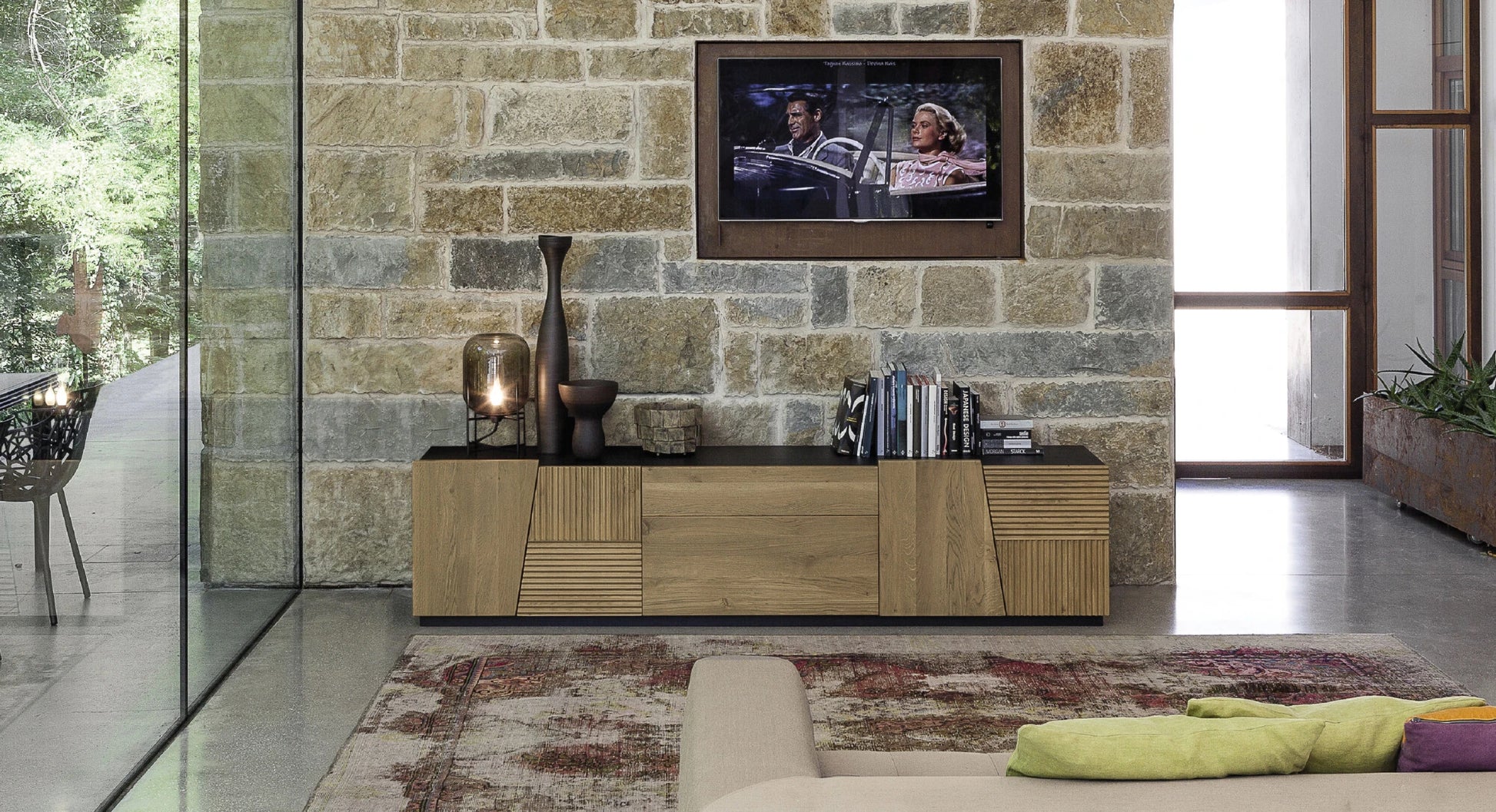 Dans la version avec socle au sol, le buffet TV acquiert un nouveau caractère. La fonctionnalité répond aux besoins individuels.