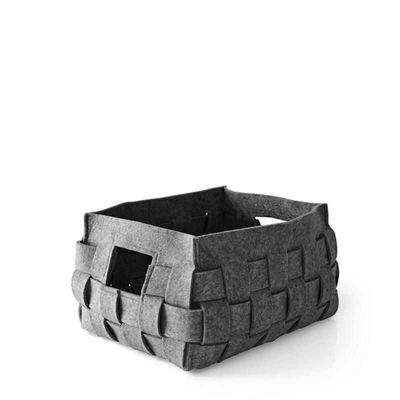 ALVIN è un set composto da tre portaoggetti di forma rettangolare e di misure diverse, che possono essere inseriti ad incastro uno all’interno dell’altro. L’intreccio della stoffa in feltro di poliestere ne caratterizza l'estetica.