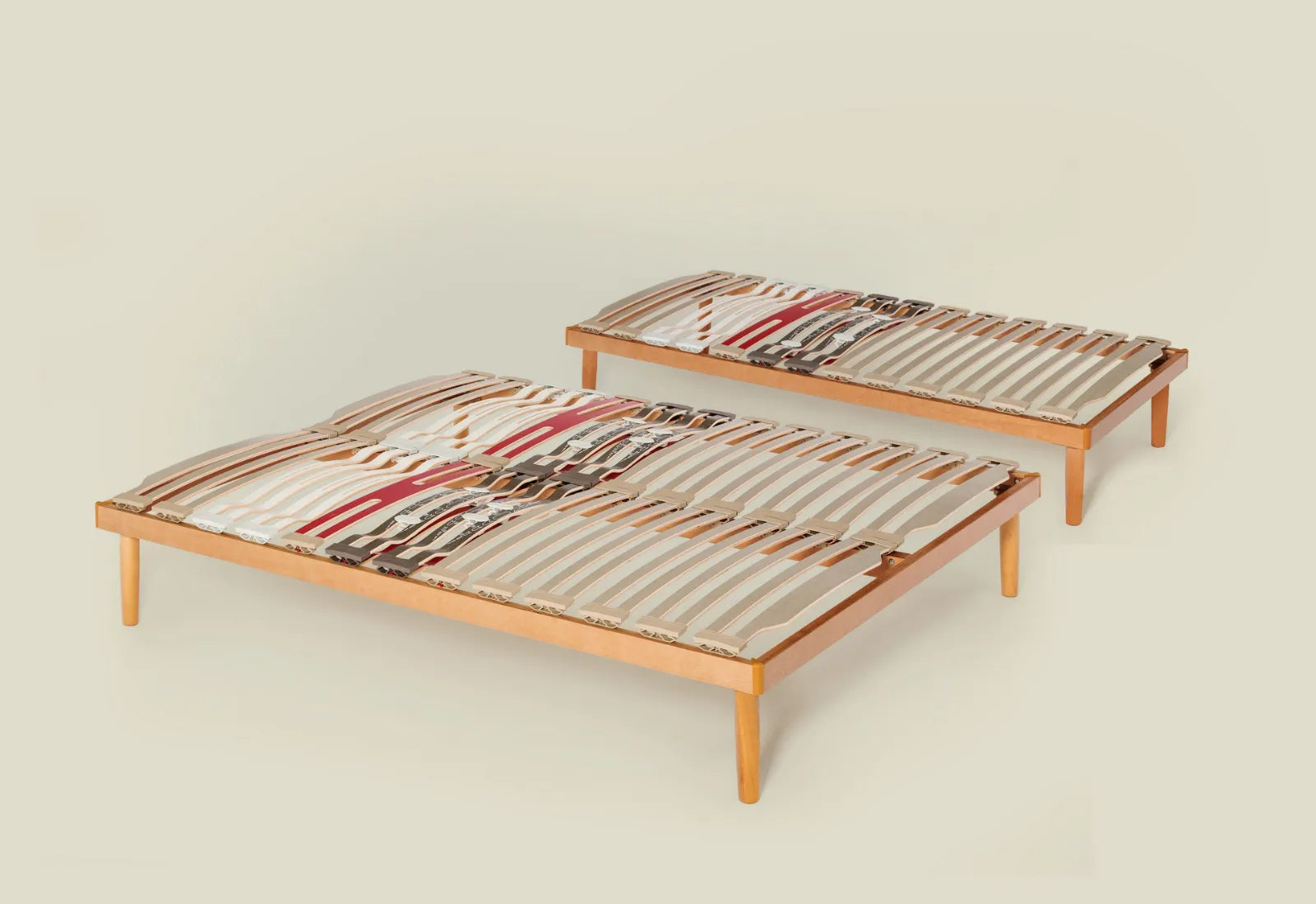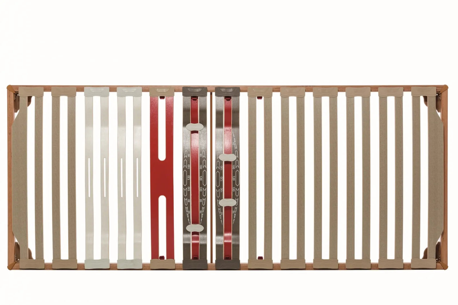 Zone des épaules : lattes en ailes de mouette fraisées et particulièrement élastiques, lattes en lordose au maintien impressionnant et lattes en ailes de mouette avec régulateurs de rigidité pour le bassin.