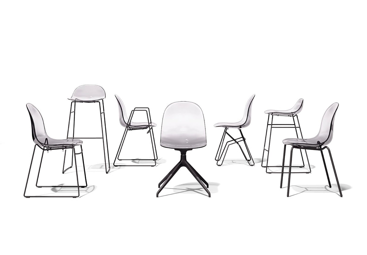 Chaise ACADEMY avec structure en aluminium. Ce modèle a la caractéristique d'être pivotant et doté d'un mécanisme de retour, donc extrêmement pratique et fonctionnel. La grande disponibilité de couleurs pour la carrosserie nous permet de proposer des alternatives capables de créer des solutions à grand impact esthétique et fonctionnel.