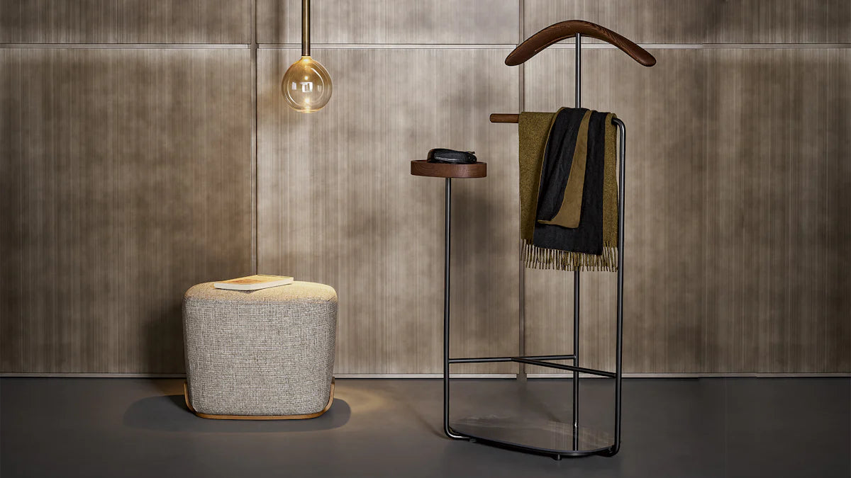 Luigio est le voiturier design conçu par Marconato & Zappa comme complément de service pour la zone nuit. Trois éléments tubulaires en métal partent de la base ovale en céramique, aux extrémités de laquelle sont fixés des éléments en bois aux fonctions bien définies. La première se termine par un cintre, sculpté dans du bois massif. Le deuxième élément se courbe pour former un support pour pantalon, mais peut également être utilisé comme accroche-sac. La troisième, parallèle à la première, se termine par un conteneur de stockage et vide-poche. Dans son élégance formelle Luigio est un objet élancé idéal pour mettre de l'ordre dans la routine quotidienne grâce à sa praticité d'utilisation. La base en céramique peut être réalisée en différentes finitions, même en contraste avec la structure, conférant au valet de chambre moderne Luigio un caractère fort et un style original.