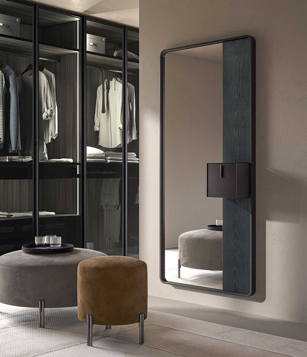 Specchio Naturale. Box contenitore metallo Metal Grey + cassetto Ecopelle.