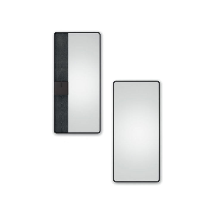 Specchiera Legno laccato opaco Metal Grey. Fascia verticale legno Essenza Olmo Nero.