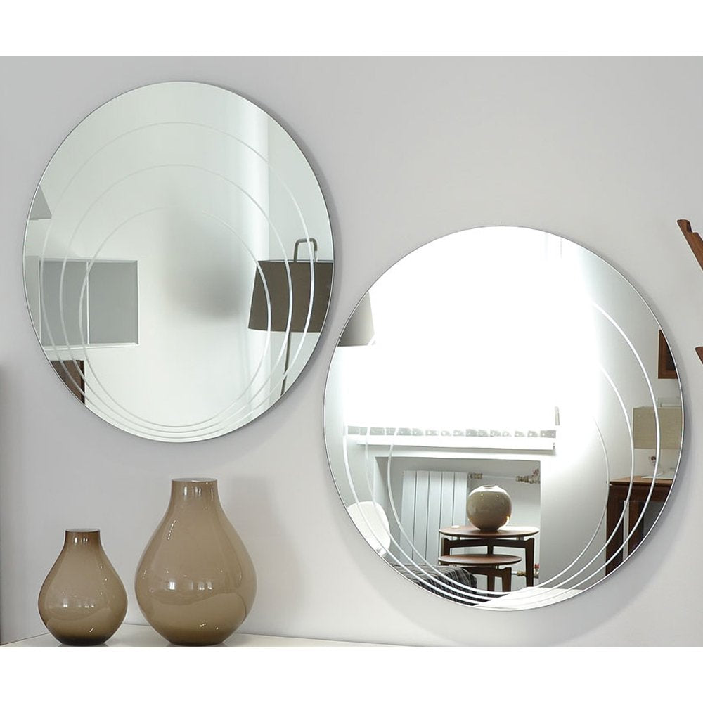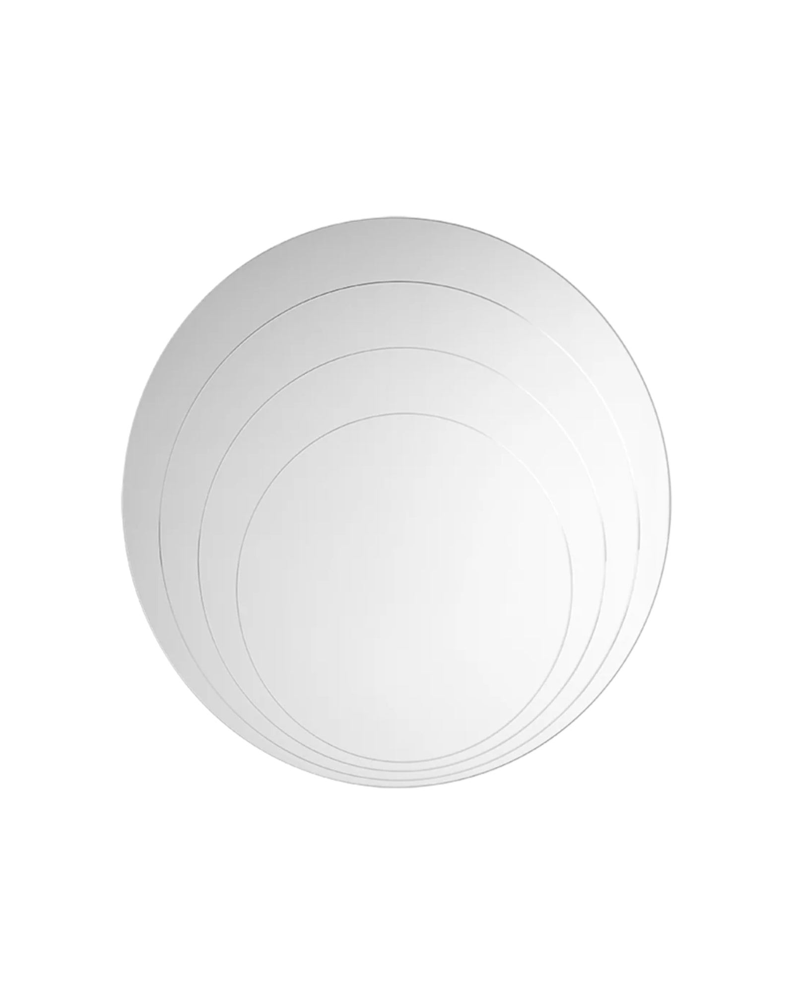 Miroir rond modèle LUNE à décor de cercles concentriques. A fixer au mur.