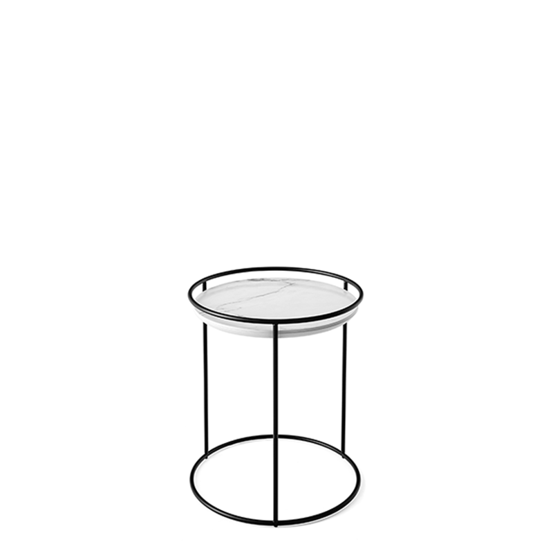 Base in tondino di metallo Ø11 mm. Piano laccato o in ceramica.
