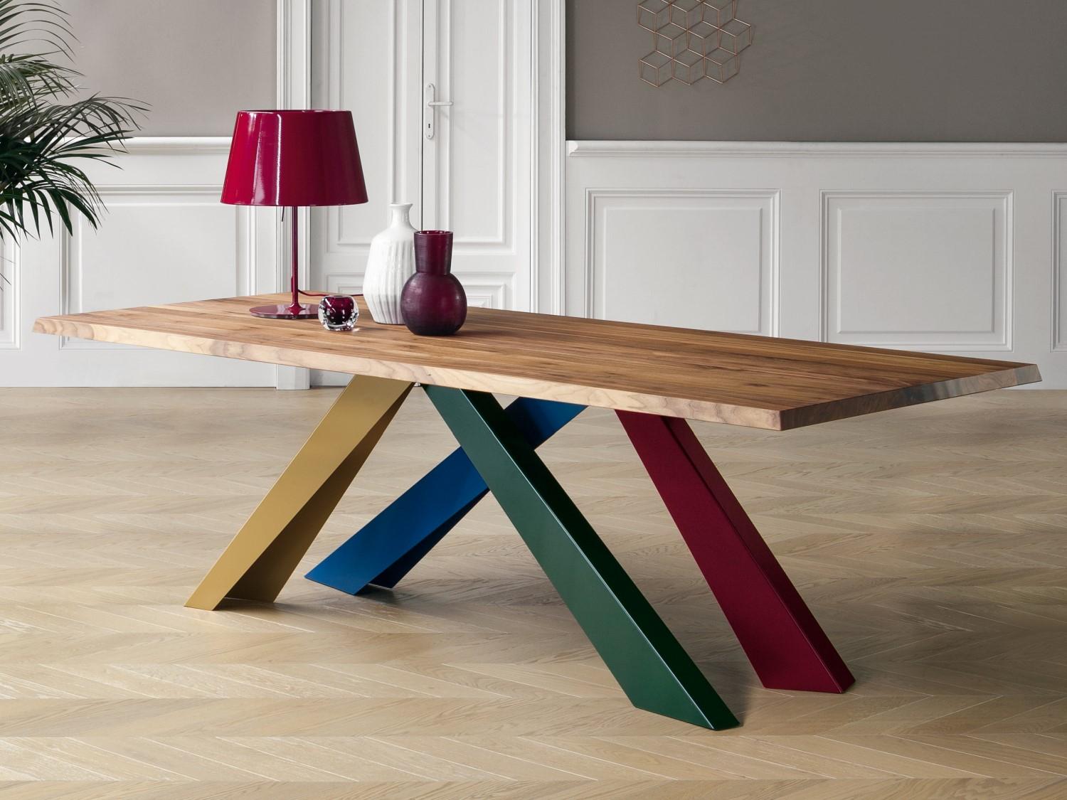 La table Bonaldo Big est une table avec pieds croisés. L'inclinaison des pieds suggère le dynamisme, la linéarité du plateau donne une grande stabilité visuelle. Immobile, ou en mouvement, Big Table Bonaldo a une personnalité résolument hors du commun. Les pieds de Big Table sont réalisés en acier découpé au laser de différentes tailles et formes géométriques, façonnés et peints mat dans de nombreuses combinaisons de couleurs ; le plateau, fixe ou extensible, est disponible en différentes finitions en bois, cristal, argile et céramique. Plastique, sculpturale, protagoniste assuré dans des contextes traditionnels ou plus contemporains grâce aux innombrables possibilités de personnalisation, Big Table est devenue l'icône du style Bonaldo. C'est pourquoi, pour fêter les 10 ans du lancement de Big Table, une Edition Spéciale en marbre de Saint Denis a été créée en 2019.