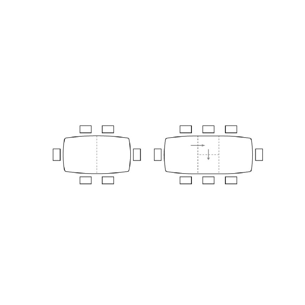 Con con piano rettangolare allungabile e gambe in legno.