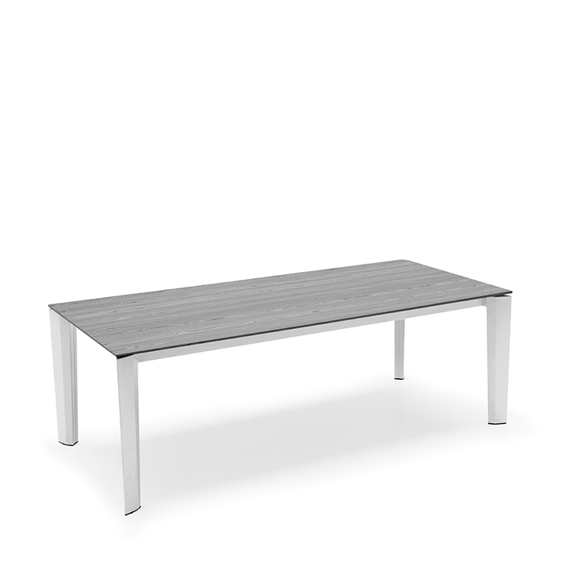 Il design del tavolo DELTA è caratterizzato dalle gambe a taglio obliquo,