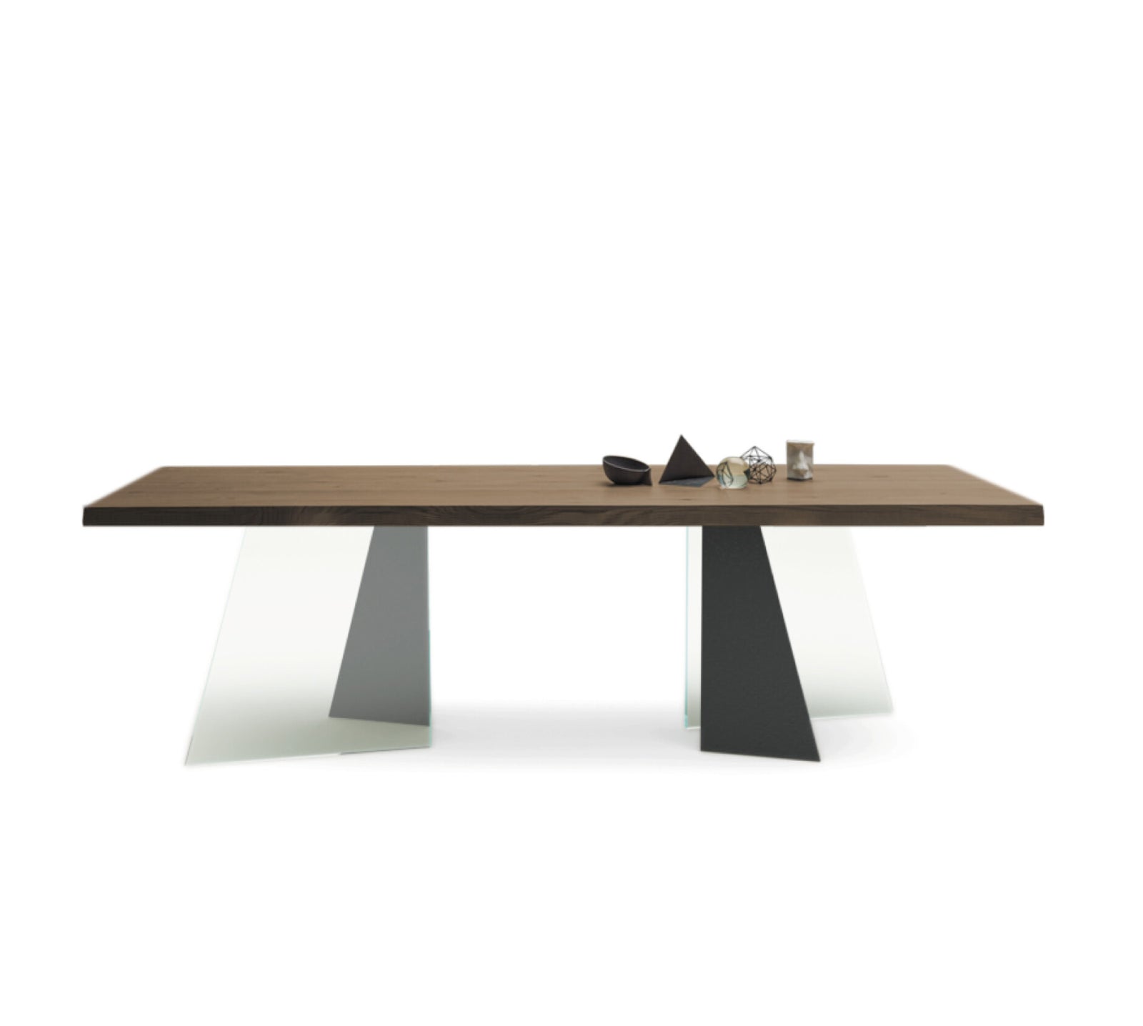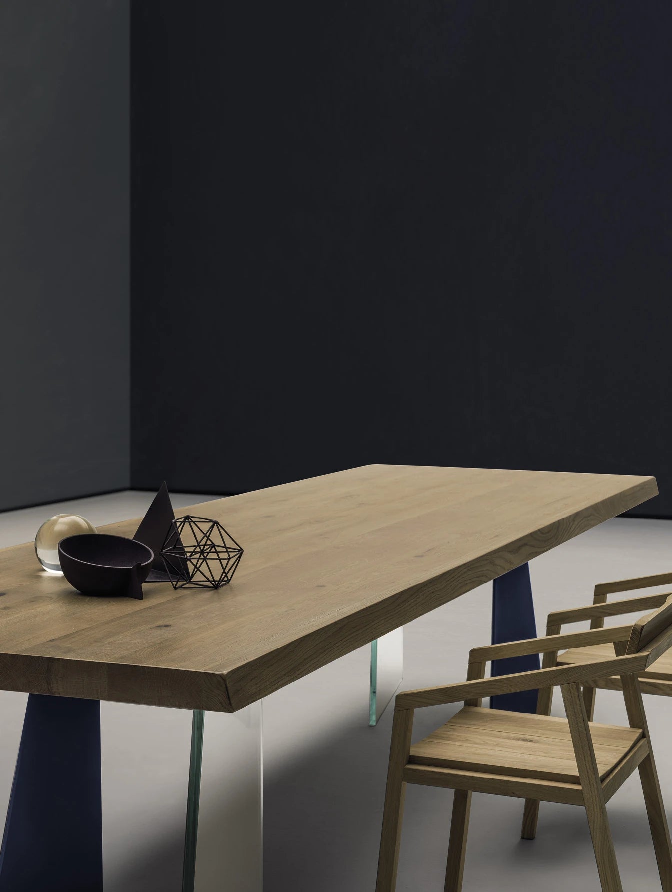 Les feuilles de verre créent un look très moderne pour un plateau en bois puissant. Découvrez à quel point une table design peut être polyvalente.