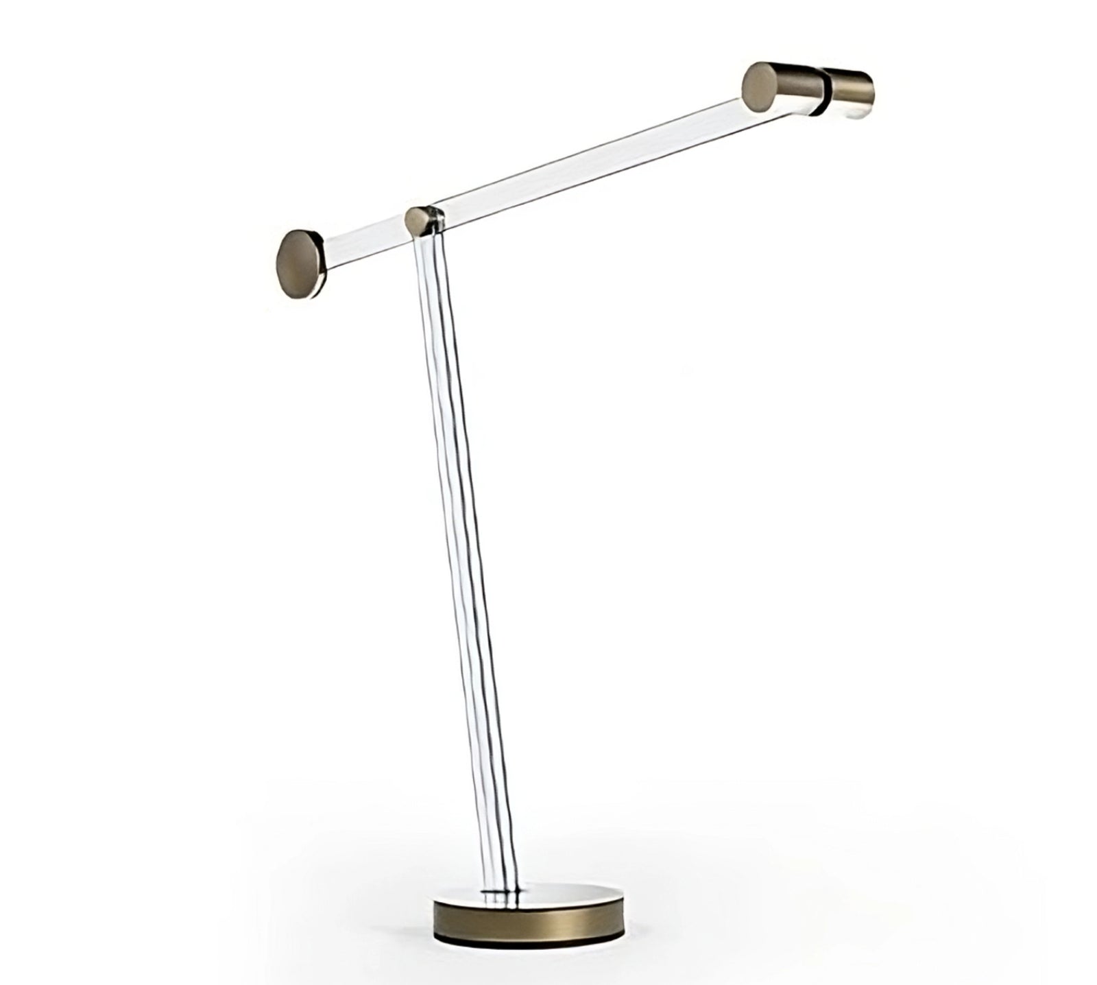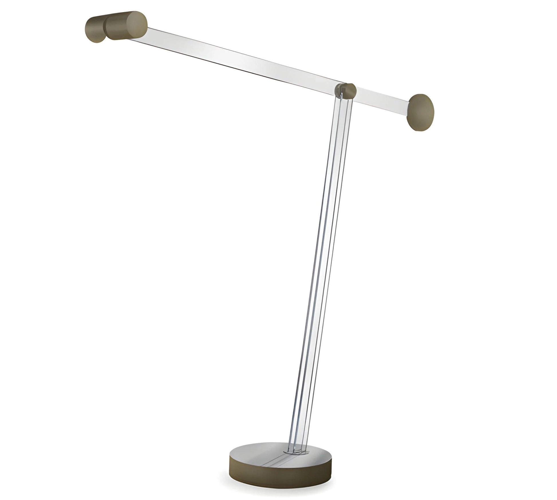Lampada da terra orientabile con basamento girevole finitura titanium dark. Supporti in vetro temperato sp.15 mm. Portalampada in acciaio inox lucido. Impianto luce LED.
